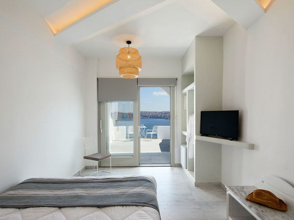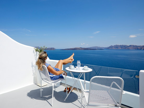 Perched high on the cliff, Santorini View Hotel is a sophisticated retreat located in Akrotiri, Santorini. Enjoy unobstructed views of Santorini's iconic volcano and Caldera, blending stunning nature with modern architectural touches. Offering more than an ordinary stay, we invite you to indulge in an unforgettable escape, set against the sparkling Aegean Sea. A sanctuary of Cycladic serenity, blessed with the majestic Santorini sunset reflections, awaits you.