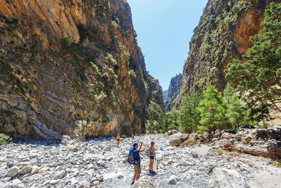 The famous gorge of Samaria proves that Crete hides the most exquisite natural miracles in its bossom. 18 kilometres in length, the longer gorge in Europe, it was officially listed as a National Park in 1962, rewards visitors, apart from everything else, with rare types of fauna and flora. The famous gorge starts from Ksyloksalo at the Omalos plateau and ends up at the sea-side village of Agia Roumeli in southern Crete. Walk around the magical Cretan nature, among around 450 types of plants and see up close the Cretan wild goat, also known as Kri Kri. A break is taken halfway at the village of Samaria, where nowadays only the rangers of the forest occupy, and it will give you the opportunity to rest as well as be charmed by the traditional architecture. The root till Agia Roumeli lasts for 4 to 8 hours (depending on your pace), however the views in combination with the dense vegetation, the magnificent trees and the running water will calm you and give your choice justice in every step. The Samaria gorge is considered to be the most visited one in Greece and the existence of drinking water as well as lavatories in different areas will make your walk even easier. Reaching Agia Roumeli, you may relax by the sea and enjoy Cretan delicacies cooked with passion and pure ingredients in one of the traditional taverns, just before the little boat transports you to Chora Sfakion.